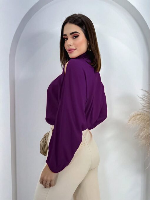 Com gola alta, manga longa bufante e ombro vazado, esta blusa é a combinação perfeita entre sofisticação e sensualidade. Seu corte cropped valoriza a silhueta feminina, enquanto os detalhes nas mangas e nos ombros adicionam um toque de originalidade ao visual.