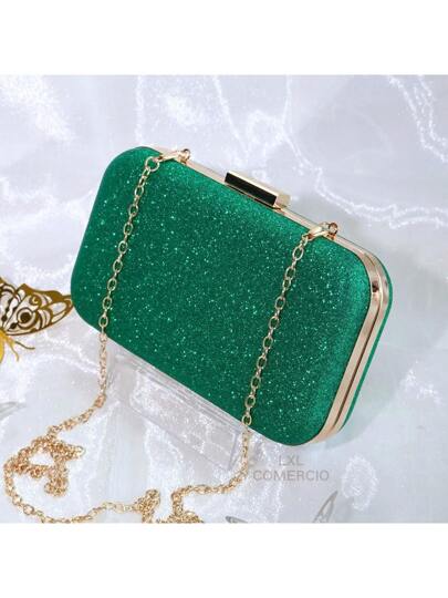 Feita com um revestimento externo de nobuk de alta qualidade, esta bolsa irá adicionar um toque de glamour ao seu visual. O brilho do glitter irá fazer com que você se destaque em qualquer evento especial. Além disso, a bolsa vem com uma alça corrente removível, que oferece versatilidade de uso.