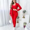 Feito com 95% Poliéster e 5% Elastano, este conjunto é confortável e se ajusta perfeitamente ao corpo, realçando suas curvas. Com detalhes em botões e gola de xale, você certamente vai chamar a atenção por onde passar.