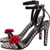 Salto: 9,5 cm de Altura Revestido em Tecido Xadrez Preto e Branco;