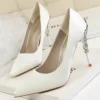Scarpin Kelyn-Festa Luxo Cetim Salto Alto Metal 10 Cm