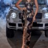 Vestido de Festa Formal Com Lantejoulas e Costura de Pérolas, Alça Transversal Aberta Nas Costas e Estilo Acolchoado