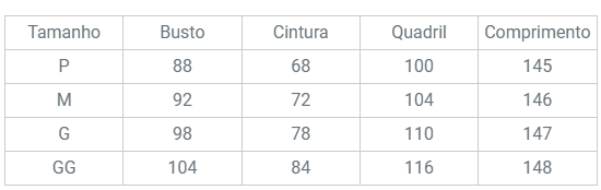 TABELA DE MEDIDAS